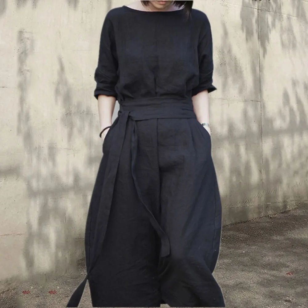 Hot Sale Maxi Boho Dress 2019 Autumn Korean Style Solid Women Knee Party Black Dress Cotton Linen A-Line Ves