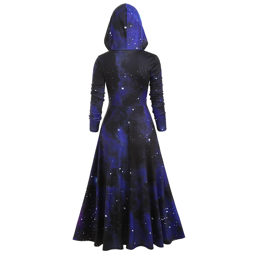 ROSEGAL Hooded Galaxy Print High Slit Maxi Top Extra Long Casual Party Dresses 2019 Autumn Lace Up